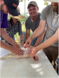 That afternoon, we learned about the correct way to kill and process a chicken. I was able to get hands-on experience with plucking the feathers and gutting the chicken.